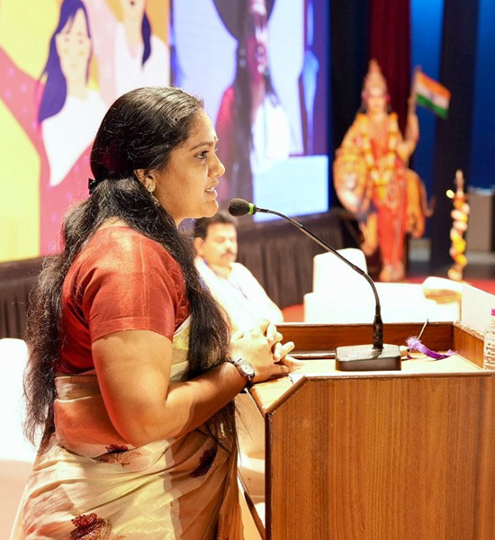 Drawn to Christianity owing to convent education since her school days, she had turned against her family and customs. She had adopted the Christian ways and that gave pain to her orthodox Hindu parents and old grandparents. She was counselled at Aarsha Vidya Samajam and is now a full-time Pracharika with Aarsha Vidya Samajam.